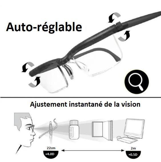 بفضل تقنية العدسات المتغيرة، يمكنك تعديل درجة الرؤية بسهولة من −6.00 إلى +3.00 لتناسب نظرك في أي وقت، سواء للقراءة، استخدام الهاتف، أو القيادة.