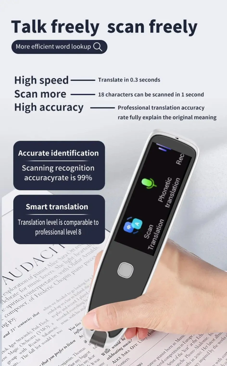 جهاز ذكي يجمع بين الترجمة الصوتية، المسح النصي، تحويل النص لصوت، والقاموس الإلكتروني —